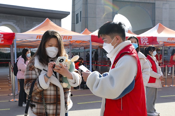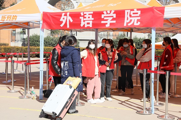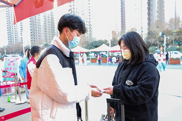 期间,身着红马甲的志愿者们为返校学生送上开学的第一份温暖,在门口、摆渡车站点、核酸检测点等各环节,做好各项贴心服务。