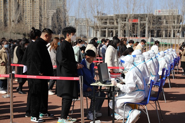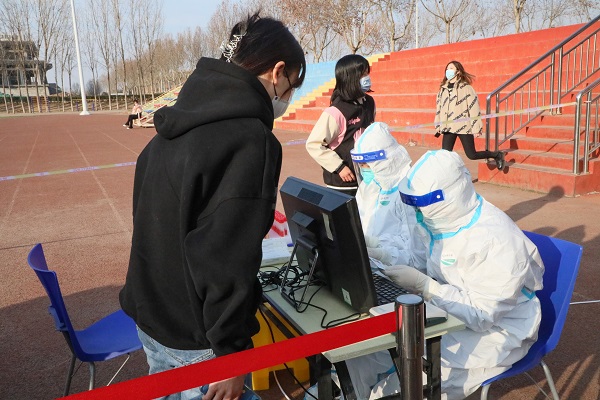 为筑牢校园疫情防控安全屏障,学校在东校区体育场设置核酸检测集中采样点,对每一位返校学生免费进行再次核酸检测,坚决防止疫情输入校园,进一步筑牢校园防疫“防火墙”,切实维护师生身体健康和正常的教育教学秩序。
