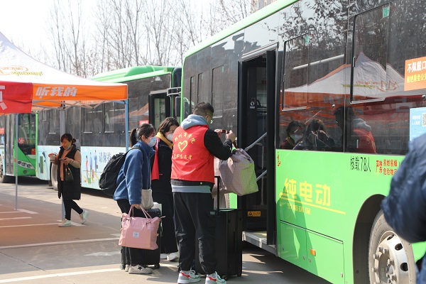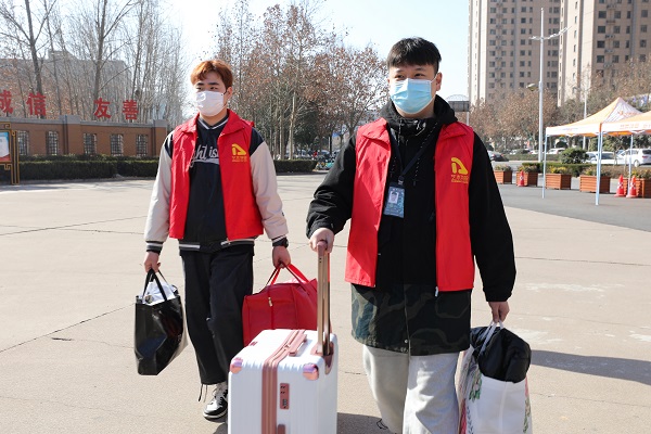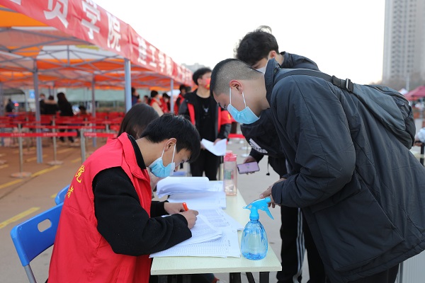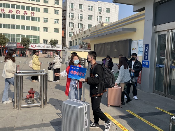 为减少不必要的人员接触,学校在火车设置集中接站点,为同学们进行免费接站服务。
