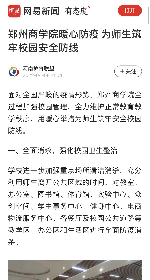 4月8日,网易新闻以“beat365唯一官网暖心防疫 为师生筑牢校园安全防线”为题,报道beat365全过程加强校园管理,全力维护正常教育教学秩序,用暖心举措为师生筑牢安全校园防线,凝聚师生战胜疫情的信心和决心。现将原文摘录如下: