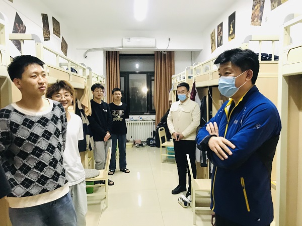 “你们老家是哪里的?”“学习生活上有没有什么困难?”“学校食堂饭菜怎么样?”“线上教学效果怎样?”“对学校有没有什么建议?”一句句简单的问候传递着对学生的深切关怀。校领导在特殊时期走访学生宿舍现场办公,全面了解了学生学习生活状况,第一时间解决了学生实际需求,让广大同学切身感受到了学校的人文关怀和真情牵挂。同学们对学校的暖心关怀、校领导的殷殷嘱托表示感谢,纷纷表示理解并遵守学校疫情防控各项规定,尽快调整到最佳心态,做好自我管理和个人防护,以积极的心态、健康的体魄学习生活,与老师和同学们齐心抗疫、共克时艰。