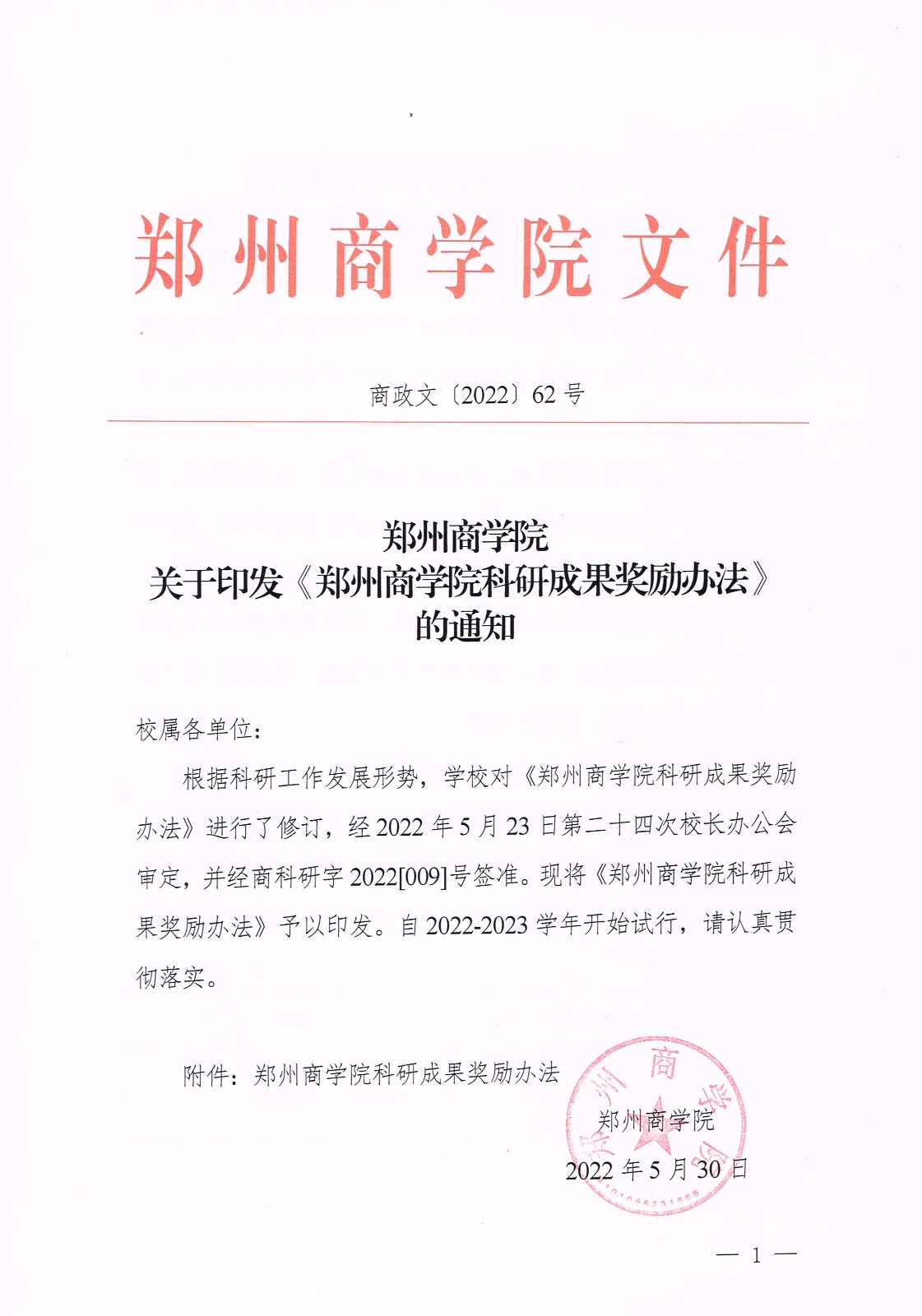 beat365唯一官网关于印发《beat365唯一官网科研成果奖励办法》的通知
