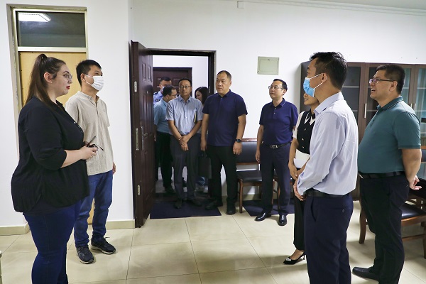 胡晓林部长一行首先在裴晓涛副书记的陪同下看望慰问外籍教师,深入校园实地考察了校园建设和基本办学情况。