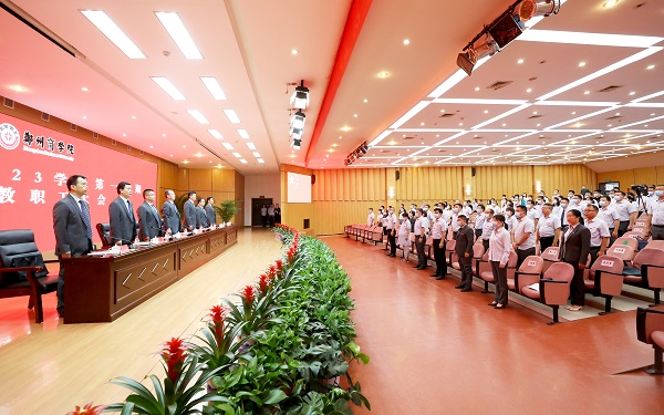 校长吴泽强作题为《坚守教育初心 凝聚奋进力量 以鲜明商科特色建设推动学校高质量发展》的校务工作报告。吴校长表示,本次会议的主要任务是以习近平新时代中国特色社会主义思想为指导,学习贯彻党的十九大和十九届历次全会精神,认真落实全国全省2022年教育工作会议要求,总结上学期工作成效,研判新阶段发展形势,部署新学年工作任务,以更加昂扬的姿态,奋力推动学校高质量发展。