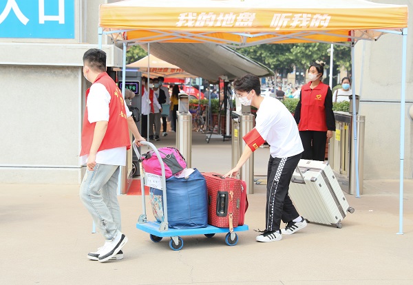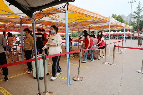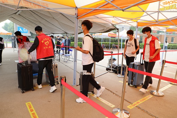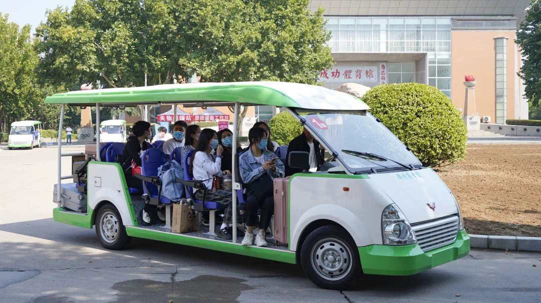 学校在高铁站、火车站设立了新生接待处,按不同时段需求,派发迎新专线,接送报到新生;校内摆渡车全天候不间断派发,打通入学报到的“最后一公里”。