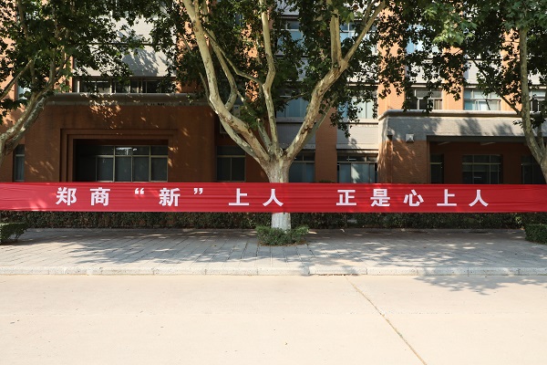 “热烈欢迎2022级新同学”“金秋九月开学季 踔厉奋发正当时”“怦然心动遇见你 逐梦郑商正青春”“开学有你是最美的遇见 未来可期是最好的期待”“你们初来乍到 我们悉心关照”“跨越山海是你们的奔赴 拳拳温情是郑商的等待”“郑商新上人 正是心上人”……步入校园,随处可见喜迎新生的喷绘、横幅、电子屏、指示牌、展架、玩偶暖心夺目;现场表演节目,尽情展示青春活力,校园氛围拉满。