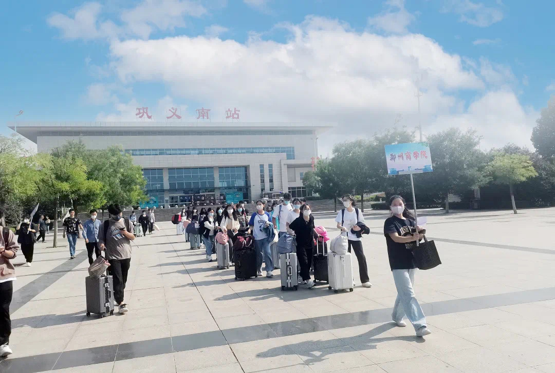 考虑到新生行李搬运难,学校在巩义高铁站、火车站均设置了迎新接待处,按不同时段需求,派发迎新专线,接新生“回家”。每年都到火车站接新生的通识中心辅导员王子浩有序组织志愿者帮新生提行李、热情地招呼他们乘坐大巴。“每年在火车站接学生,已经让我在迎新季有了仪式感,能为他们保驾护航感觉很有意义。”