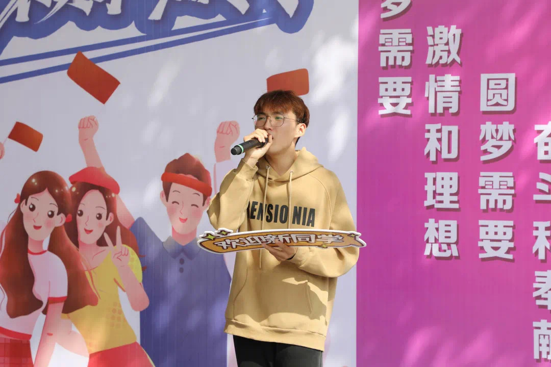 当然,学校还组织了活动,吸引新生互动——学长学姐们用歌声和舞姿为新生送上开学祝福,熟悉的“太空人”玩偶在校园内与新生热情舞动,传递郑商温度。