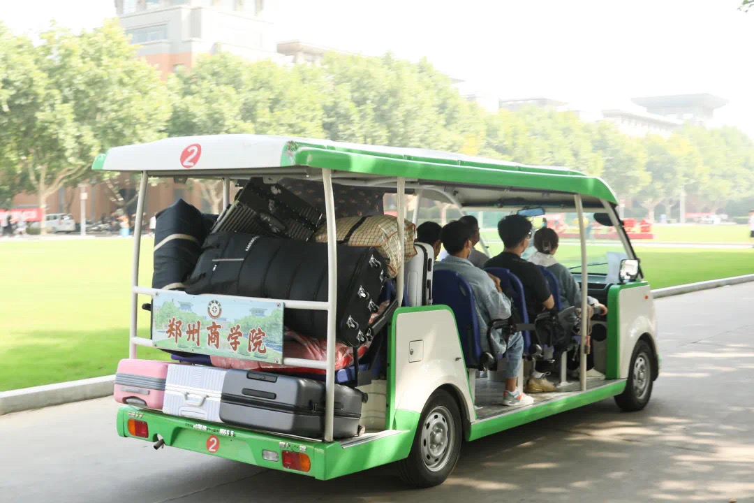 校内也在东、西校区分别开设了由多辆公交车和小型观光车组成的摆渡车专线,全天不间断运行,途径12个停靠点,覆盖所有宿舍楼,安排随车志愿者,确保新生行李不掉队、不落件。摆渡车志愿者樊相宏说:“我们的主要工作是通知到站,避免新生下错站,并将行李运送给在停靠站等候的志愿者,希望这种环环相扣的服务,能让他们感受到学校的温暖。”