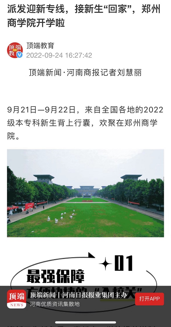 初次踏入大学校园,一切都充满新意。小萌新们带着对未来的憧憬,在郑商开启新征程。暑假期间,小萌新们就确认了室友,早早建群聊天,无话不谈,“你们几点到校,我帮你们搬行李啊”“开学了一起暴风吸入一些美食!”他们双向奔赴,期待着“网友”奔现。报到当天,文传学院新生于露露清晨5点就迫不及待来学校,她对大学生活很有规划,未来想当老师的她认为走好大学第一步很重要。“我想竞选班长,好好提升自我、锻炼能力。”为了做好竞选准备,她专门向高年级学长请教了PPT模板和格式,提前准备越充分,面对事情才更游刃有余。艺术学院新生高晓莉和室友们见面后,迫不及待地去探索学校的各个网红打卡地,一起在校园漫步,一路上谈笑风生,聊着身边发生的小故事。她们志同道合,一起定下了奋斗目标,“祝愿我们所见皆美好,所行不负年少。”文传学院新生江致诺性格外向,是大家口中的“社牛”,入校后一手拎行李、一手拿喇叭喊着:“姐,你在哪,我来了!”在宿舍楼下寻找助导的身影,入学前和助导的有效互动让江致诺很快融入郑商大家庭。会计学院新生石琦暑假关注了学校官方抖音号,看了很多关于学校的视频,对学校的布局和建筑可以说一点也不陌生,入校后她照着电子地图逛校园,一一找到视频中的建筑,收获了很多意想不到的惊喜。