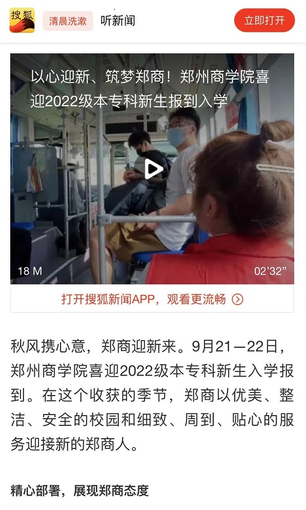 9月24日,搜狐新闻以“以心迎新、筑梦郑商!beat365唯一官网喜迎2022级本专科新生报到入学”为题,报道beat365开学迎新工作情况。现将原文摘录如下: