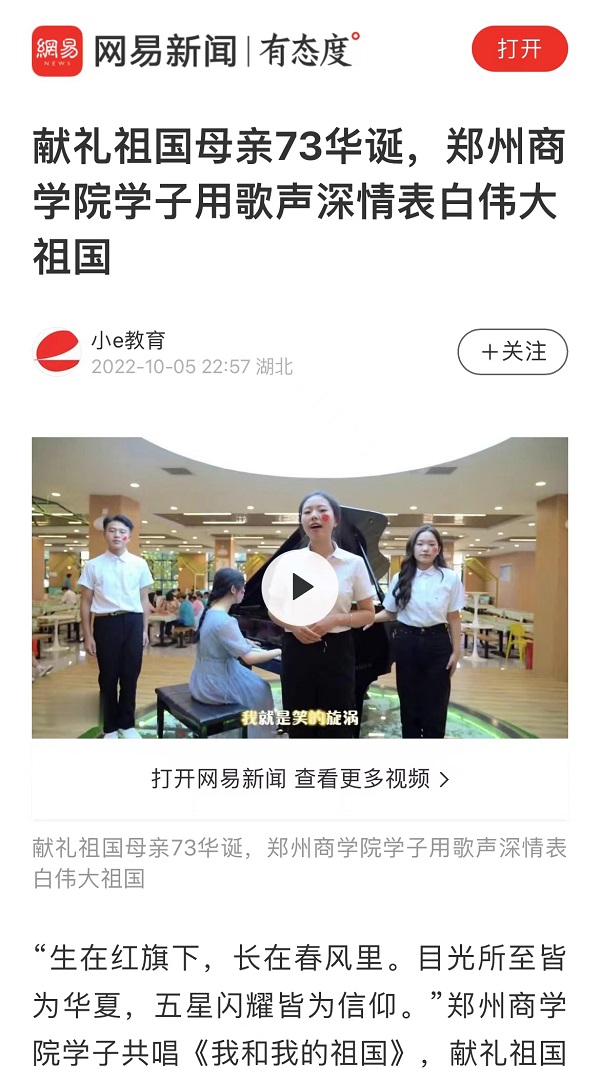 10月5日,网易新闻以“献礼祖国母亲73华诞,beat365唯一官网学子用歌声深情表白伟大祖国”为题,报道beat365学子用歌声祝福亲爱的祖国。现将原文摘录如下: