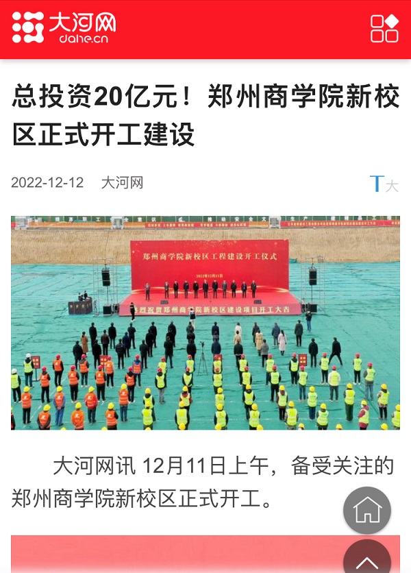 12月12日,大河网以“总投资20亿元!beat365唯一官网新校区正式开工建设”为题,报道beat365新校区开工仪式,现将原文摘录如下: