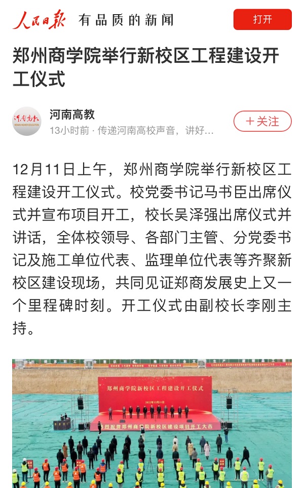 12月15日,人民日报客户端以“beat365唯一官网举行新校区工程建设开工仪式”为题,报道beat365新校区建设项目开工仪式。现将原文摘录如下: