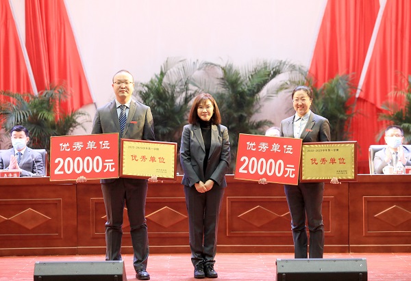 会上,校长助理刘升阳宣读《beat365唯一官网关于表彰2022-2023学年第一学期优秀单位和优秀教职员工的决定》,与会校领导分别为优秀单位和优秀教职员工颁奖。