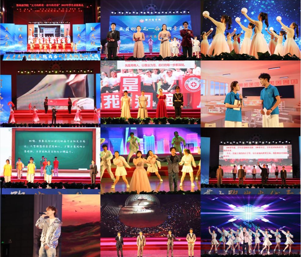 本次典礼共分为“接力青春赛道”“担当时代责任”“奋斗成就未来”三个篇章,紧紧围绕“五月的鲜花·奋斗的青春”主题,通过风采视频、文艺展演、表彰先进等形式,用朝气蓬勃、斗志昂扬的青春风貌,以青春活力的舞步、整齐高昂的歌声、生动感人的情景剧、声情并茂的诗朗诵,展青春友谊、展奋斗风采、展拳拳之心、展理想荣光……这一场青春的盛会生动展现了郑商学子新时代青年的激情和力量。
