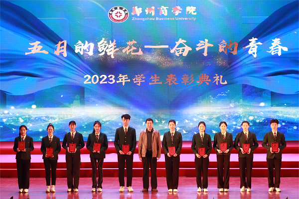 过去一年,郑商广大青年学子弘扬五四精神、勇担家国使命、建功立业新时代,用青春书写爱国的史诗,用行动证明“五四精神”的力量,涌现出一批先进集体和先进个人。典礼对2022-2023学年获得“三好学生”“优秀奖学金”“优秀团员”“优秀学生干部”“优秀团干”“十佳团支书”“‘三大教育、两大工程’先进个人”“明星社团”“先进团支部”“先进班集体”“标兵学生团队”“第五届‘青春榜样’”等12个奖项的先进个人和先进集体进行了表彰颁奖,激励全体师生用青春之姿,继续昂扬奋斗。