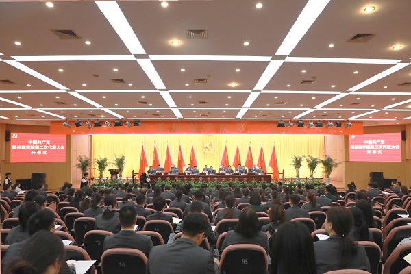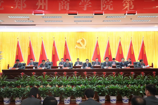 党委书记吴建军代表学校第一届党委会作题为《开启新征程 勇担新使命 全面建设商科特色鲜明的应用型本科高校而团结奋斗》的报告。报告全面总结了第一次党代会以来学校取得的成绩,明确了学校今后五年工作的指导思想,号召全校各级党组织和广大党员干部要更加紧密地团结在以习近平同志为核心的党中央周围,统一思想意志,凝聚奋进力量,以高质量党建为学校事业发展提供坚强的政治保障、思想保障、组织保障,咬定目标不放松,坚定信心谋发展,全力落实好学校“十四五”规划各项目标任务:一是坚持党建引领,推动党建工作与学校事业发展深度融合;二是站位发展大局,奋力开启郑商发展新征程;三是加油苦干实干,努力把“十四五”美好蓝图变为生动现实;四是压紧压实责任,全力确保“十四五”规划圆满完成。