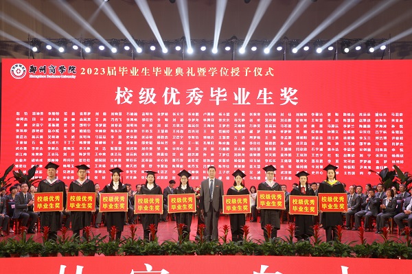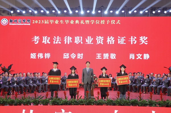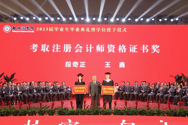 在热烈的掌声中,执行董事陈坚德、党委书记吴建军为考取注册会计师资格证书、法律职业资格证书的同学颁奖并合影留念;其他校领导分别为考取硕士研究生、获得专业综合成绩第一名的毕业生代表和获得“省级优秀毕业生”“校级优秀毕业生”的毕业生代表颁奖并合影留念。