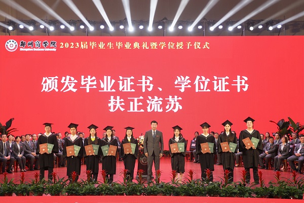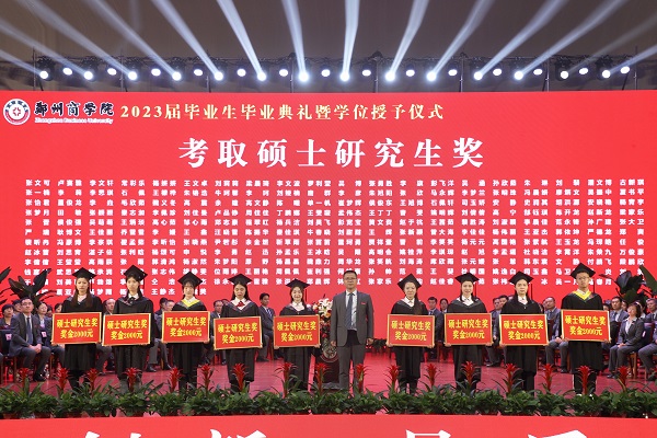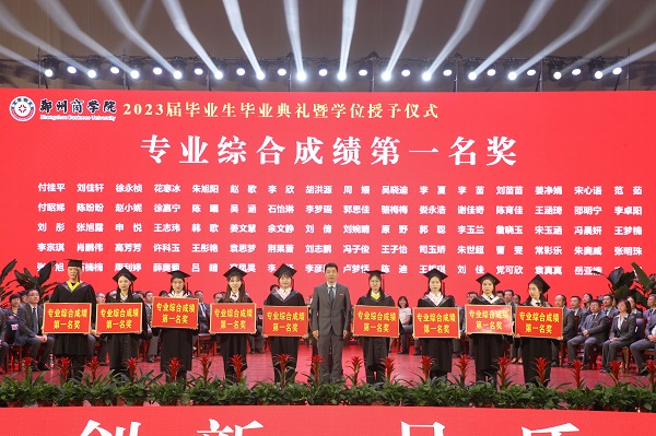 吴泽强校长寄语2023届毕业生:一是新的人生路上要融得入大局,保持志向不移。同学们要始终胸怀家国责任,勇担复兴使命,争当强国先锋,把个人价值追求主动融入党和国家的事业之中,用“青春梦”支撑“中国梦”,用坚守担当书写无愧于祖国、无愧于历史的美好人生。二是新的人生路上要耐得住寂寞,保持学习不止。同学们要紧扣时代脉搏,常怀本领恐慌,无惧衣带渐宽,勤于学习思考,干一行爱一行,钻一行精一行,在祖国的大江南北把郑商名片擦得更加闪亮。三是新的人生路上要扛得住煎熬,保持坚韧不拔。同学们要坚信,只要初心不改、百折不回,每个人都能把自己心目中的“世界杯”揽入怀中。四是新的人生路上要守得住纯粹,保持热爱不减。希望同学们在与生活的酸甜苦辣正面交锋后,仍要相信曾经的相信,执着曾经的执着。五是新的人生路上要经得住考验,保持宠辱不惊。未来岁月里,作为郑商学子,无论同学们是赫赫有名还是默默无闻,母校都希望同学们成为“不被成功所定义,自己去定义成功”的人生赢家。吴校长表示,“毕业礼”也是“祝福礼”“启程礼”,紫荆路136号是同学们永远的故乡,同学们是母校永远的牵挂。