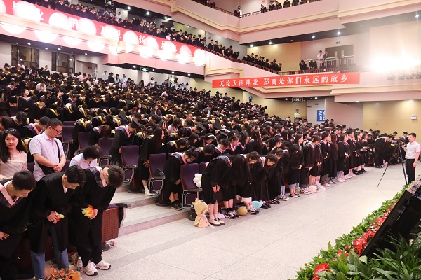 全体毕业生向师长行“谢师礼”,深鞠一躬表达敬意与感激之情,感恩母校与师长的教诲和培养。