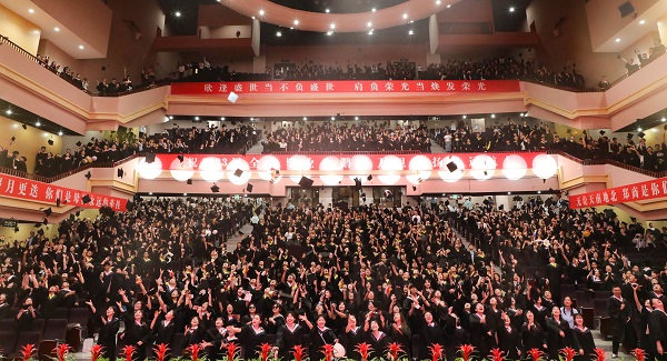 典礼现场洋溢着浓浓的师生情和不舍的离别情,毕业生们尽情拥抱着这个属于他们的庄严盛典,欢呼和掌声包含着相聚的感动和收获的喜悦。