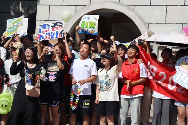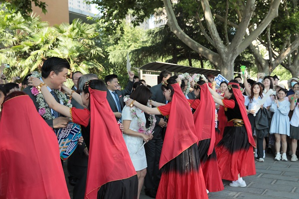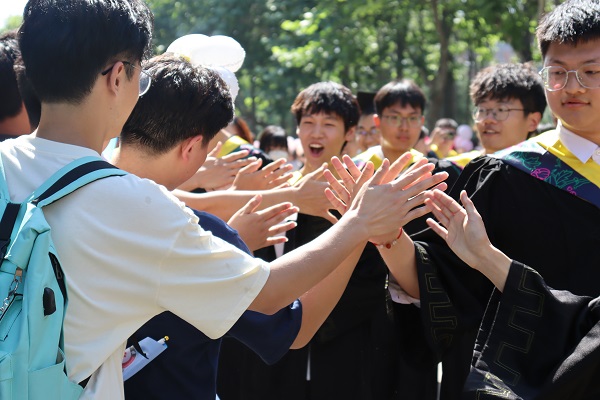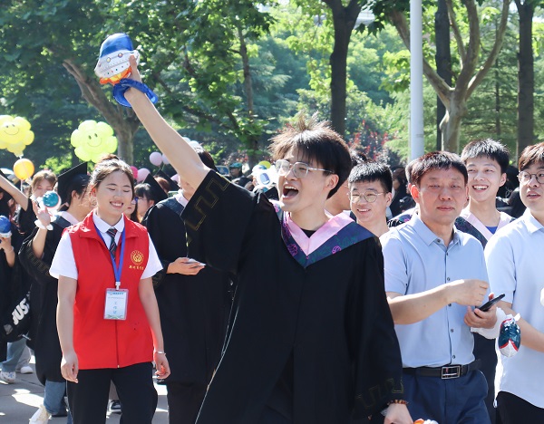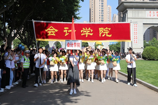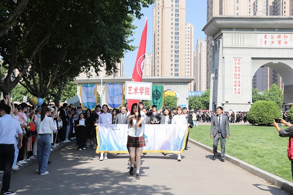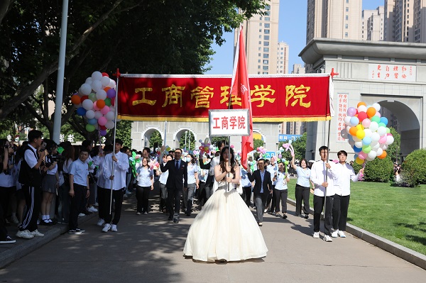 6月8日上午,伴随着军乐团欢快、强烈的鼓点,备受师生喜爱、独具郑商特色的毕业生校园巡礼拉开帷幕。王育华董事长、陈坚德执行董事、吴建军书记、吴泽强校长、裴晓涛副书记、张江涛助理、刘升阳助理和各部门主管、副主管、教师代表手持祝福板,为毕业生加油鼓劲;在校生代表带着各式的标语、手卡、鲜花、礼物,有秩序地分列在巡礼路线两侧,为他们送上祝福;毕业生们与师长、同学们挥手告别,相互祝福,再一次行走在郑商校园里。