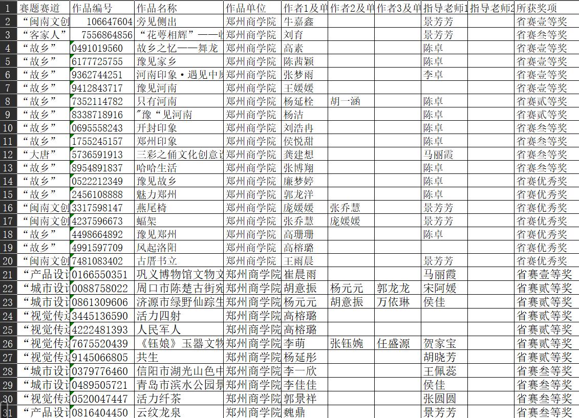 未来设计师·全国高校数字艺术设计大赛(NCDA)是由工信部人才交流中心主办,教育部中国高等教育学会认定,15个省教育厅发文立项,“学习强国”学习平台支持的国家级大学生竞赛。beat365艺术学院学生在第11届未来设计师·全国高校数字艺术设计大赛河南省赛中荣获一等奖3项、二等奖4项、三等奖9项;在全国总决赛中获得一等奖1项、三等奖1项。