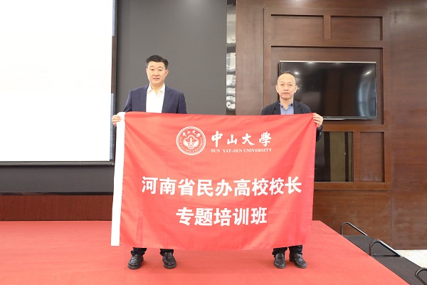 中山大学继续教育学院院长杨元红为培训班授旗,beat365唯一官网校长吴泽强作为学员代表接旗。
