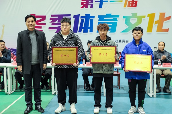 第十一届冬季体育文化节赛事主管、体育学院院长张元通宣读成绩公告,信工学院、建工学院、金贸学院分别获得团体总分前三名,大会对获奖单位及个人进行表彰奖励。