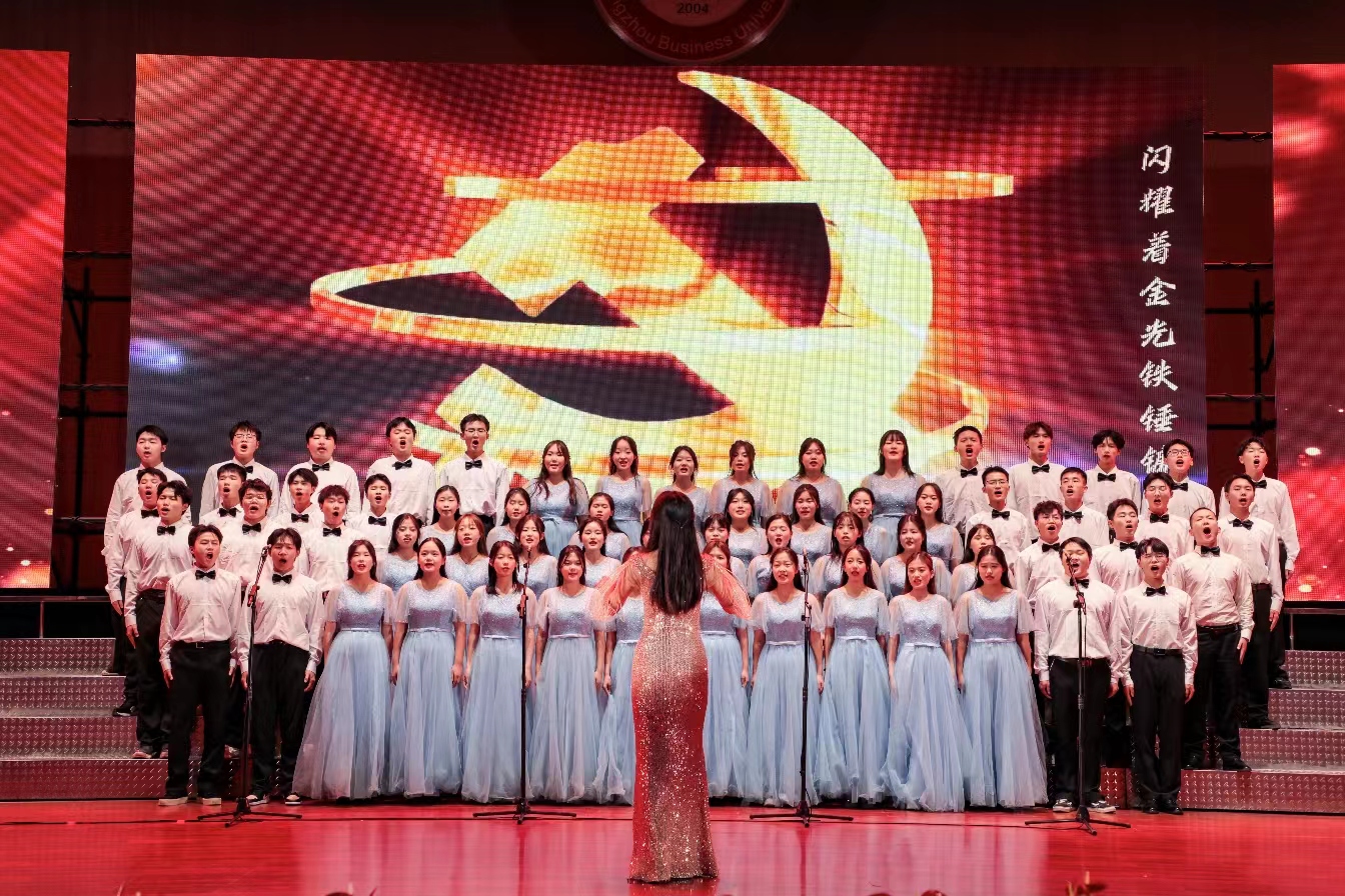 弦歌不辍,唱响百年辉煌;百年峥嵘,凝聚奋进力量。文传学院选送的《游击战歌》一上来激情澎湃,以深沉、激荡的红色旋律开启了大赛的第一篇章《峥嵘岁月传薪火》;外语学院带来的《在灿烂阳光下》道出共产党领导全国人民走过的风雨历程,沐浴着新时代灿烂阳光下的我们,应怀揣着心中信仰,肩负起青年一代的使命,共筑新时代新辉煌;校团委星空合唱团的《有我》将共青团100年的“伟大”与“平凡”唱成一首不朽的诗,以青春赴万丈理想,回溯着一代代不负时代重托的中国青年。