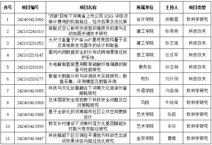 近日,根据《关于下达河南省二〇二四年科技发展计划的通知》(豫科〔2024〕42号),beat36511个项目获批2024年河南省科技厅项目立项,其中科技攻关项目5项、软科学研究项目6项。根据结果统计,beat365获批立项总数位居全省民办高校前列。这是beat365实施“有组织科研”以来,强化科研管理、加强团队建设、丰富学术交流、激发科研创新活力取得的新突破。