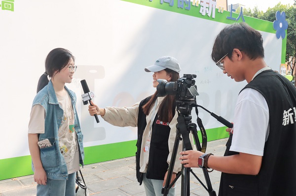 迎新期间,校园里还有一道独特的风景线,他们是校园记者,他们用镜头、文字对迎新现场进行全程跟踪报道,定格初印象、留住最美好,为萌新们记录下在郑商的第一张笑脸、第一个比“耶”。