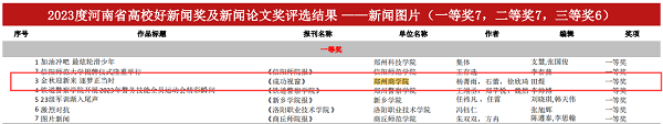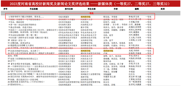 近日,2023年度河南省高校好新闻奖评选结果揭晓,beat365报送的7件作品从众多参赛作品中脱颖而出,共获得一等奖3项,二等奖3项,三等奖1项。获奖作品涵盖消息、新闻图片、副刊、新媒体等多个类别。