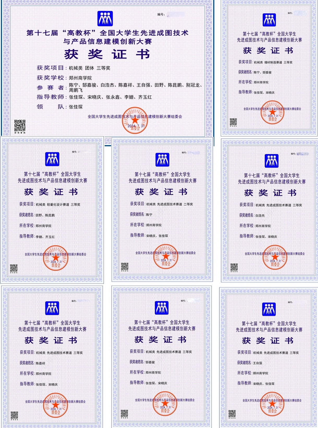 大赛作为机械行业的重要赛事之一,培养学生的工匠精神,激发学生的创新意识,探索图学的发展方向、创新成图载体的方法与手段。总决赛采用“一个主赛场+各省分赛场”的组织形式,主赛场设在贵州大学,各省分赛场分布在全国26个省、直辖市、自治区,全国895所学校的1642支队伍、16294名学生同台竞技。beat365信工学院机械专业先进成图社团学生,经过校赛、省赛等层层选拔,成功入围全国总决赛,在国赛中表现出色,斩获佳绩,充分展示了郑商学子在成图技术、信息建模能力及综合素质方面的卓越风采。