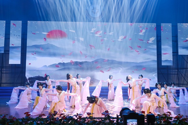 “同向·逐梦”篇章以舞为伴,引吭高歌,展望未来,带给观众们全新的感受与体验。玲珑其音,瑶光其貌,古典舞《瑶光赋》舞姿端庄轻盈,皎洁如月,长袖似璧,将晚会的气氛推向高潮;歌曲《祝你铮铮》,在青春洋溢的氛围中,各学院新生辅导员代表为新生送上真挚的祝愿,希望新同学可以在新的起点,开启自己的追梦之路;情景剧《纸短情长》演绎了懵懵懂懂的新生逐渐融入校园生活的经历,语言中充满青春气息与活力,明确自己目标,追光而遇,沐光而行;中英歌曲《声声慢》,空灵的歌声柔情似水,好似缕缕绕耳的暖风,低沉的英文又为舞台增添别样的风采。