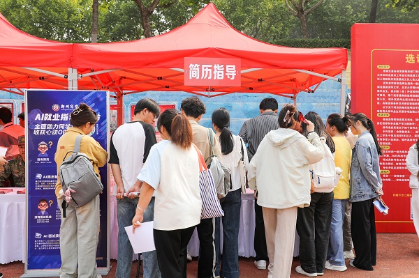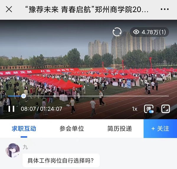 此次双选会设立并采用了三大创新点,为毕业生提供了更加便捷、高效的就业服务。一是“智慧就业服务区”。配备先进的1号求职机,该设备首次在河南省内校园双选会现场亮相,依托支付宝与1号职场的强大平台,仅需一键刷脸即可轻松投递简历至现场及云端海量职位,让求职更加高效便捷。二是“AI就业指导服务台”。利用人工智能技术,为毕业生提供个性化的就业指导服务。通过AI简历制作、AI简历辅导、AI岗位适应性测评、AI面试演练四大核心功能,帮助毕业生精准定位,提升求职竞争力。三是“云端网络直播平台”。通过搭建线上直播平台,让无法现场参会毕业生通过屏幕感受双选会的热烈氛围,同步浏览各类岗位信息,实现在线投递简历。据统计,直播期间累计吸引4.78万人次观看,真正实现了“就业服务无界限”。