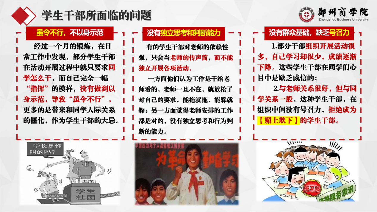 会议伊始,王凯书记从“什么是学生干部”“学生干部面对哪些问题”“好的学生干部如何培养”这三个方面展开,阐述了如何做一名优秀团学干部的核心议题。
