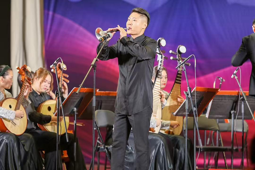 开场曲《北京喜讯传边寨》的音乐一开始就能让人联想到边寨人民听到喜讯后的兴奋,节奏明快像是人们欢呼着跳起来的脚步,展现了山寨人民载歌载舞、热烈庆祝伟大胜利的满腔热忱;管弦曲《良宵》通过轻松愉悦的曲调,表现了友人相聚的怡然自得;《牧民新歌》展现出新时期牧民在广袤草原牧场上生机勃勃的精神风貌;《豫调》的旋律带着泥土的芬芳,仿佛能让人看到豫地乡村的质朴生活;《云南回忆》第三乐章融合古典与现代的音乐元素,展现云南特色和文化底蕴;《十面埋伏》用苍劲悲壮音乐揭开千古英雄诗的扉页,荡气回肠;《牛斗虎》音乐节奏紧凑,鼓点和音符的交织如同战场上的刀光剑影,每一个音符都像是武器碰撞的火花。通过乐段间的多端变化,展现了牛只倔强凶悍,虎之威武勇猛;《新赛马》生动形象地展现出广袤草原、万马奔腾的热烈场面;《百鸟朝凤》的旋律奏响时,仿佛让人置身于一片繁茂的森林。各种鸟鸣声般的音符此起彼伏,描绘了大自然美好景色。最后一曲《瑶族舞曲》以优美旋律展现了能歌善舞的瑶族人民生活,也让这场音乐盛宴圆满落下帷幕。