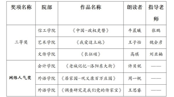 第五届河南省高校大学生主题朗诵大赛获奖名单(个人)