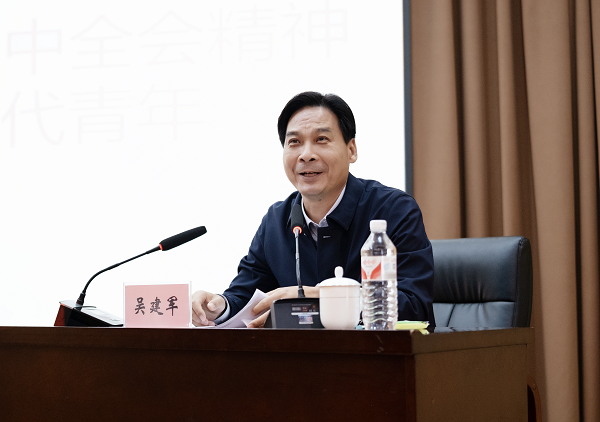 吴建军书记以《学习贯彻党的二十届三中全会精神 做挺膺担当的新时代青年》为题,围绕“深入学习领会党的二十届三中全会精神,深刻认识进一步全面深化改革,推进中国式现代化的重大意义”“深入领会党的二十届三中全会尤其是《决定》主要内容和精神实质,明确全面深化改革的指导思想、总目标、重大原则、战略部署和工作举措”“共青团干部在贯彻落实党的二十届三中全会精神中的责任与担当”三个方面对党的二十届三中全会精神的丰富内涵和精神实质进行了全面系统地解读,并就下一步如何抓好全会精神的贯彻落实提出要求。