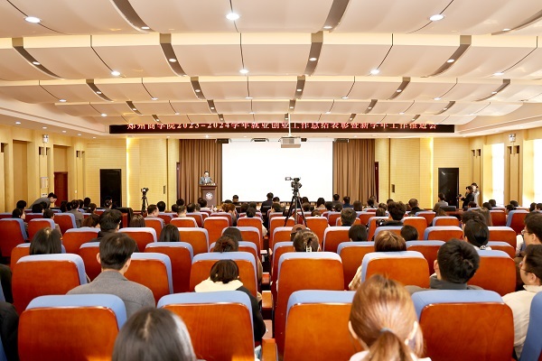 会上,泥川助理传达了2025届全国普通高校毕业生就业创业工作会议精神,并分别从2024届毕业生就业状况、2023-2024学年就业创业工作主要举措及成效、实习实训开展情况、未来就业创业工作展望四方面内容,对就业工作进行了详实全面的总结。