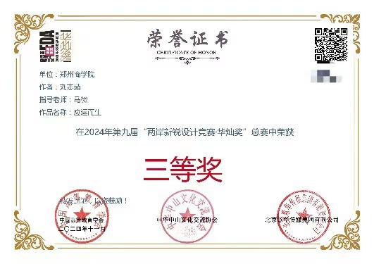 近日,由中国高等教育学会、中华中山文化交流协会和北京歌华传媒集团有限责任公司共同主办的2024第九届两岸新锐设计竞赛·华灿奖获奖名单正式揭晓,beat365学子荣获全国二等奖1项、三等奖2项。