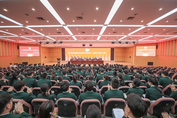 党委副书记裴晓涛在讲话中充分肯定了学校共青团在着力抓牢抓实青年思想引领、凝聚青年围绕大局积极作为、多措并举服务青年、持续深化自身改革等方面取得的系列成绩。他介绍了学校近年来聚力教育教学审核评估这一重大战略任务,着力提高人才培养质量、改善办学条件、促进高质量就业等方面的举措和重大发展成就,其目的就是为了同学们在郑商学习得更好、生活得更好,发展得更好。他指出,团代会是全校团员青年政治生活中的大事,各级团组织和广大团员青年要切实发挥桥梁纽带作用,紧紧围绕学校中心工作,充分发挥组织优势、活动优势和阵地优势,不忘初心,坚定信念,永远跟党走,切实当好党的助手和后备军,引领团员青年争当学校事业发展的生力军、争当中国式现代化建设的先锋者。他强调,全校各级党组织要坚持党管青年工作原则,进一步深入落实党建带团建制度,持续完善各方面齐抓共管青年工作格局,支持共青团按照群团工作特点和规律创造性地开展工作。全校各级领导干部要做青年朋友的知心人、青年工作的热心人、青年群众的引路人,为学校广大青年成长成才、建功立业搭建更加广阔的舞台。