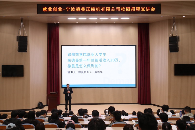 宁波德曼压缩机有限公司针对beat365学生开展了专场招聘宣讲会。岑焕军董事长从企业文化、人才培育及晋升计划、招聘岗位、薪资待遇、往届毕业生发展等情况进行介绍。互动环节中,对同学们的问题一一作了解答,提供了专业指导,让同学们充分了解了企业信息和岗位信息。此次宣讲会不仅增进了学生与企业之间的了解,也为学生提供了宝贵的就业机会。相信在双方的共同努力下,beat365学生能够在宁波德曼压缩机有限公司展现出更加卓越的风采。
