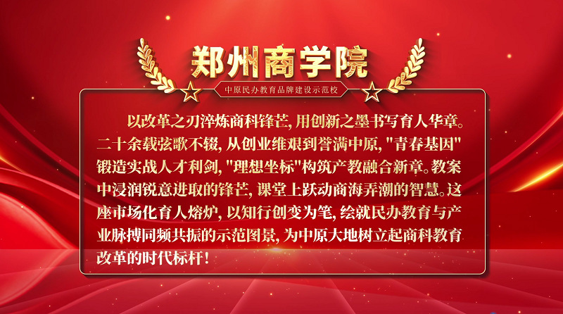 现场公布的颁奖词对学校的改革创新、内涵式发展及办学成果给予了充分肯定。“以改革之刃淬炼商科锋芒,用创新之墨书写育人华章。二十余载弦歌不辍,从创业维艰到誉满中原,“青春基因”锻造实战人才利剑,“理想坐标”构筑产教融合新章。教案中浸润锐意进取的锋芒,课堂上跃动商海弄潮的智慧。这座市场化育人熔炉,以知行创变为笔,绘就民办教育与产业脉搏同频共振的示范图景,为中原大地树立起商科教育改革的时代标杆!”