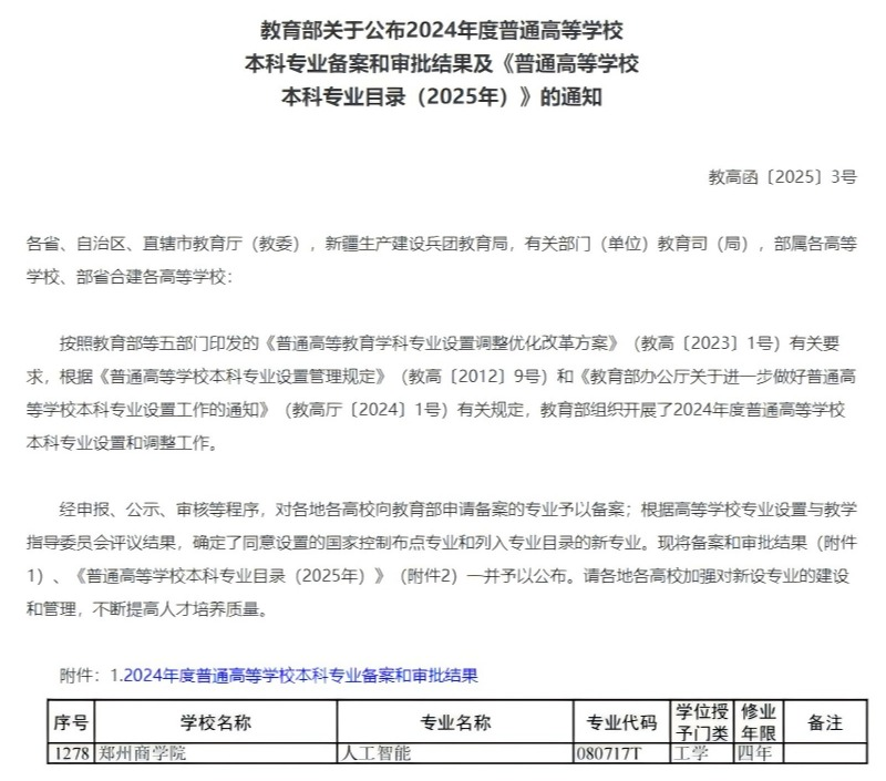 近日,教育部公布了2024年度普通高等学校本科专业备案和审批结果,beat365申报的人工智能本科专业成功获批。