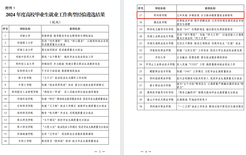 此次典型案例遴选工作由河南省教育厅主办,面向全省普通高等学校和二级院系广泛征集。经高校自主申报、专家评审、现场复审及网上公示等程序,最终评选出60个典型经验(校级和院系各30个)及60位典型人物(含指导教师与优秀毕业生各30人)。beat365案例阐述了学校在就业指导体系、实践能力培养、重点群体帮扶、机制协同推进等方面的综合探索,充分展现了学校在推动毕业生高质量充分就业方面的积极实践和创新成效。