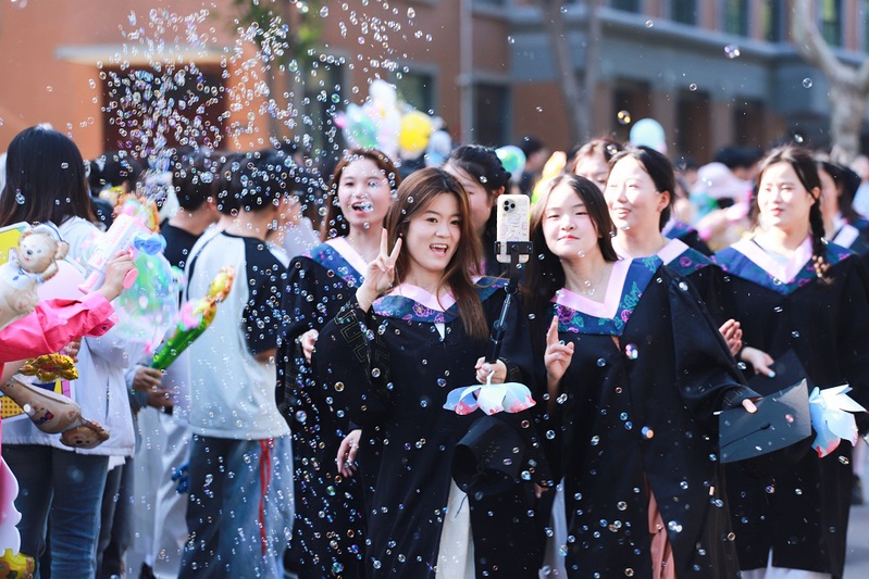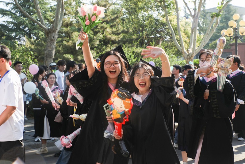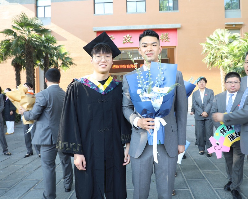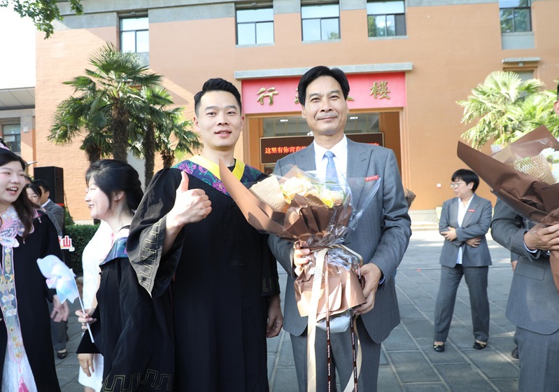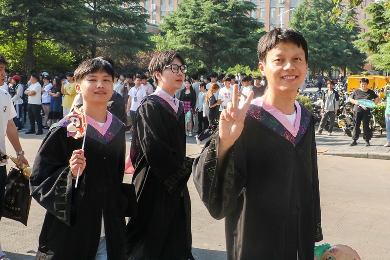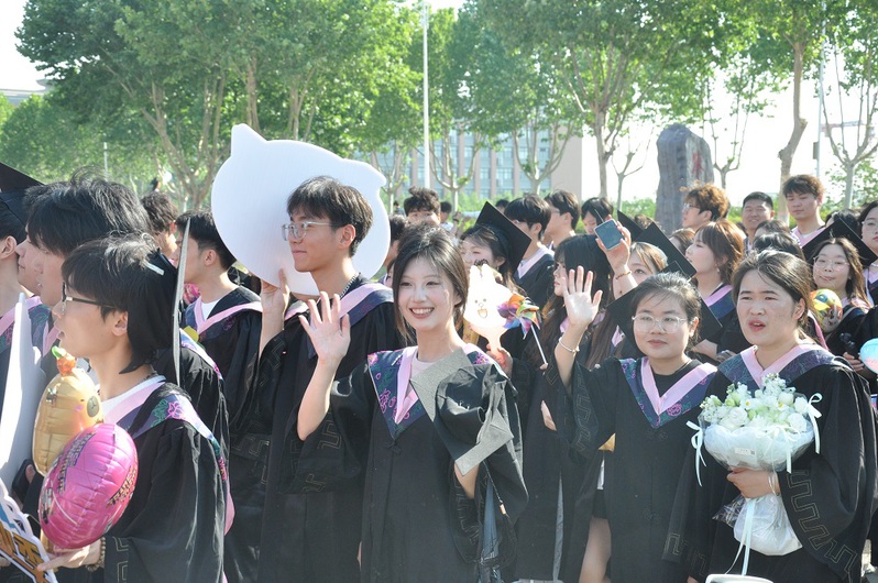 毕业生们身着学士服,沿着熟悉的郑商校园路线阔步前行,与恩师击掌话别,和同窗拥抱致意,让每一步都成为对校园的深情丈量。阳光下,师生间的微笑与拥抱、学弟学妹们的欢呼与送别,共同交织成郑商校园里最动人的毕业图景。