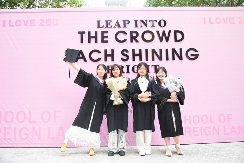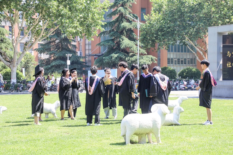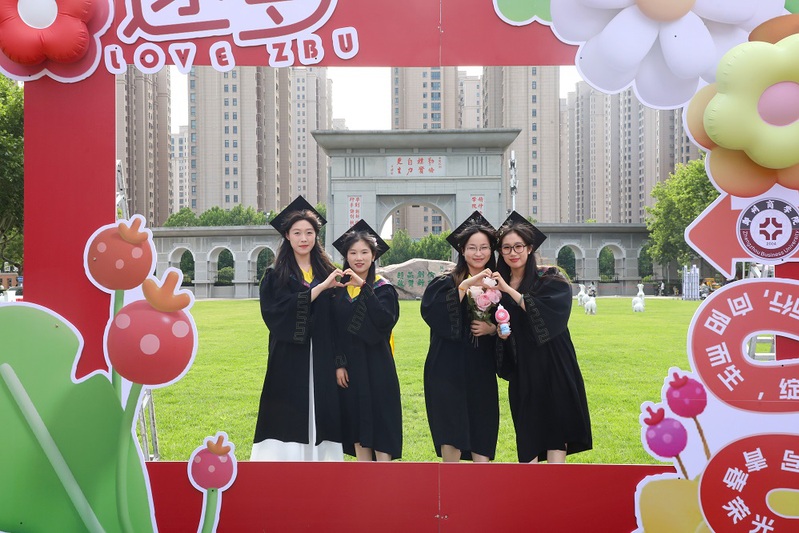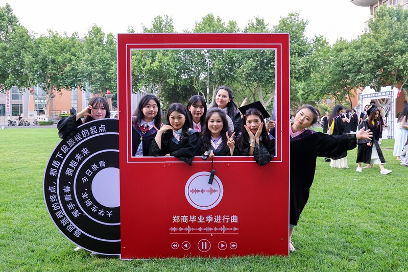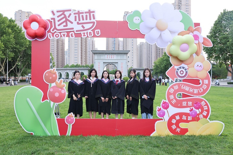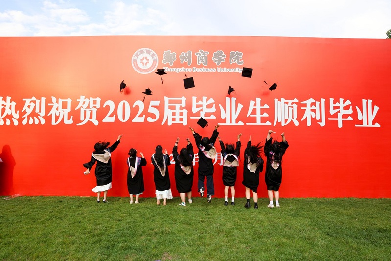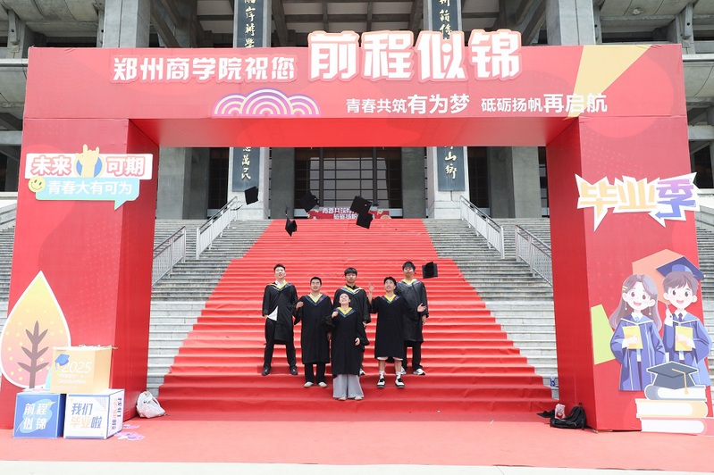 学校大门高悬“热烈欢送2025届毕业生”条幅;“热烈祝贺2025届毕业生顺利毕业”“我们永远是郑商人”的巨大喷绘矗立在中心广场草坪,与葱郁绿植相映成趣,毕业生们身着学士服在此驻足,让镜头锁住与母校的独家记忆。三大校区内布置了“逐梦前行”“向阳而生”“从郑商启航未来如夏花般灿烂”等20余处创意打卡点,独具匠心;各楼宇电子屏循环播放“祝2025届毕业生前程似锦”“愿你遍历山河,常回家看看”“把故事留在郑商 把归途写成眷恋”等暖心祝福语,满载期许。成功大会堂内外气氛热烈,大幅祝福语“祝2025届全体毕业生乘风破浪,再启新程!”“向远方 披星戴月终有收获”“盼重逢 初心如磐再叙芳华”高高悬挂;定制的“ZBU”毕业系列限定文创产品,刻满了郑商印记;各种美好的祝愿标语在郑商校园飘扬。